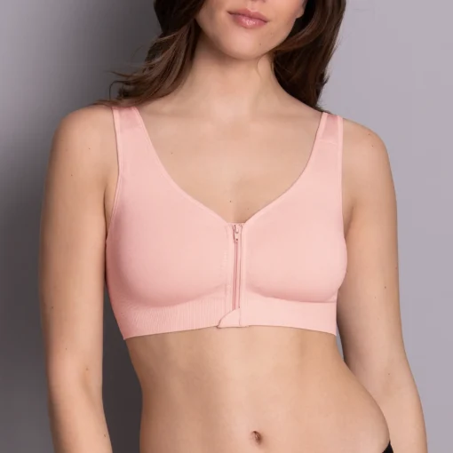Et Sporty look og ukompliceret komfort giver denne Bh uden bøjle fra Anita Care Lynn. Bh’en er lavet i et lækkert og blødt materiale uden bøjle og med et vatteret indlæg men kan tage ind eller ud efter behov eller erstatte med protese. Bh’en kan også bruges som Protese Bh. Brede behagelige stropper afrunder komforten med en følelse af “second skin”. Foran åbnes og lukkes Bh’en med lynlås, som front lukning, i fuld længde og er let at styre. Det aftagelige formstøbte vattering i dobbeltlags skålene, der skjuler såvel som støtte, skaber en naturlig silhuet. Comfort Bh’en er specielt god til sport som yoga og pilates, med den gode flade ryg uden hægter og andet der kan generer dig når du ligger på ryggen.
