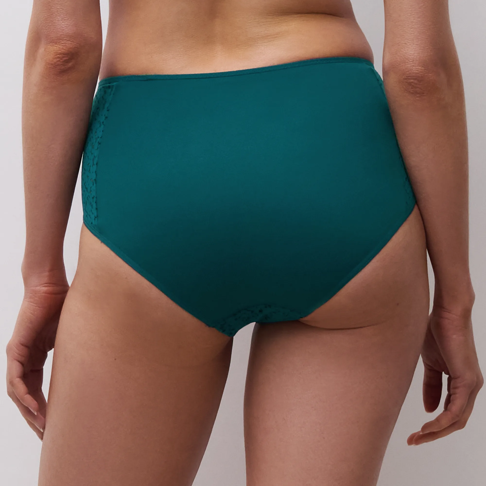 Maxi trusse i orientalsk grøn er et oplagt valg til dig der ønsker komfort og støtte med en elegant finish. Trussen har en høj talje som dækker godt og skaber en flot og glat silhuet under tøjet. Den brede pasform følger kroppen uden at stramme og føles blød mod huden hele dagen. Fronten er dekoreret med let blomsterblonde som tilføjer et feminint touch mens bagsiden er holdt helt glat for at undgå synlige linjer. Materialet er åndbart og elastisk og bevæger sig naturligt med kroppen uanset hvad dagen bringer. Indersiden er foret med bomuld i skridtet for ekstra komfort og hygiejne. Den klare grønne farve giver trussen et moderne udtryk og gør den til en smuk og funktionel del af din undertøjsgarderobe.