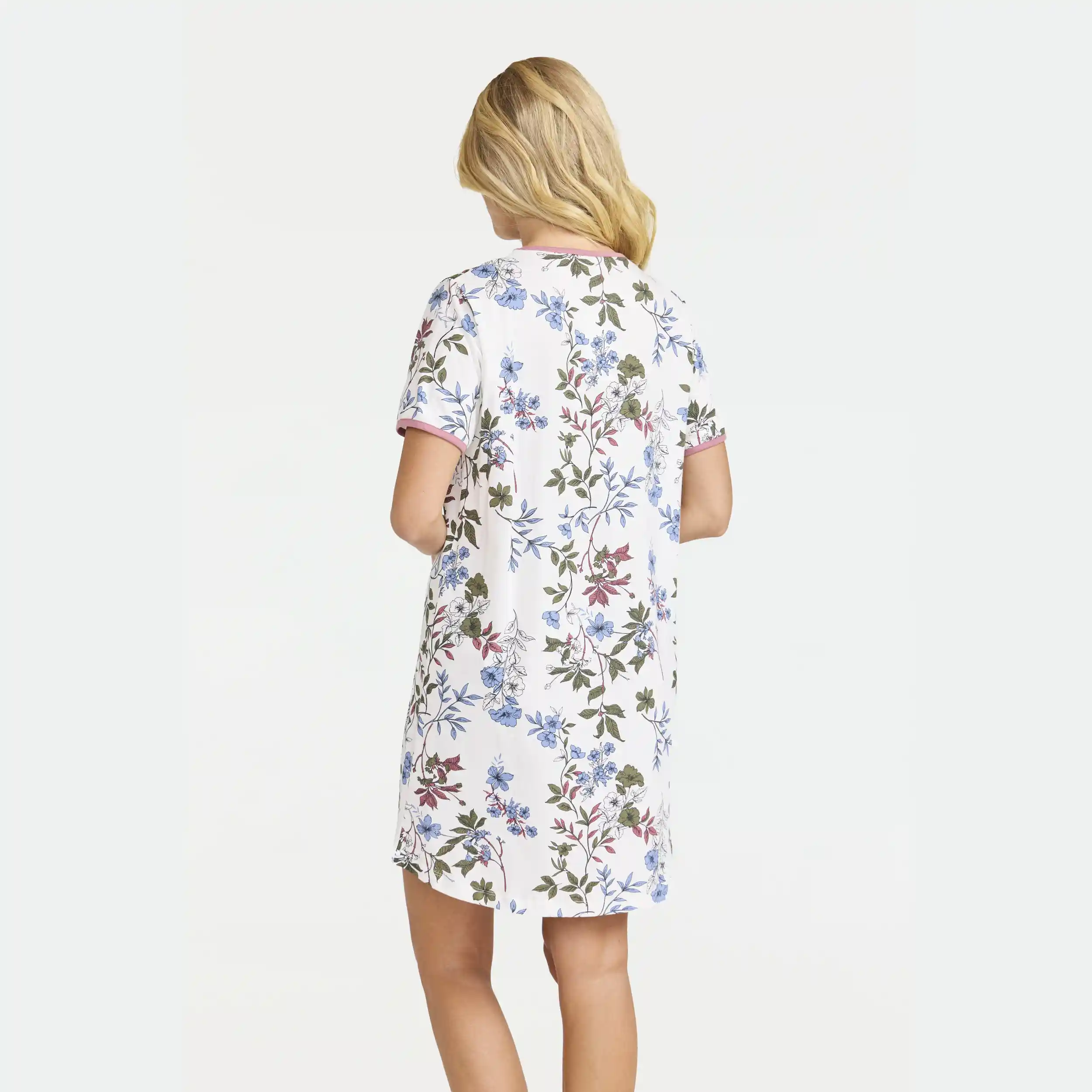 Natkjole i bomuld og modal med blomsterprint og korte ærmer