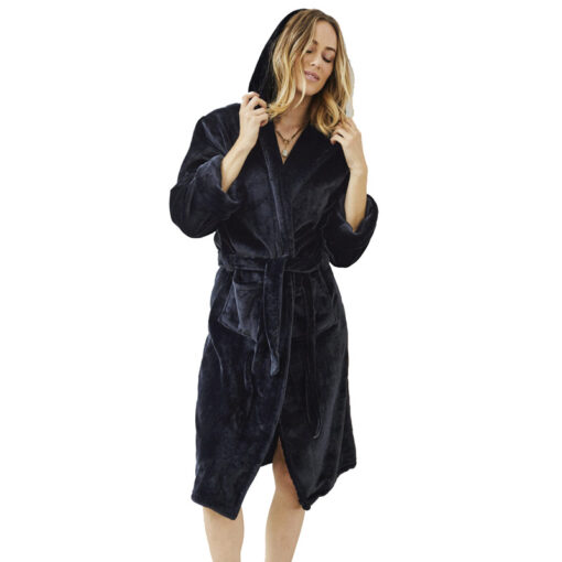 Lækker Teddy kåbe fra Decoy, i det lækreste og blødeste materiale. Kåben har en god længde, der går ned over knæene, samt har bindebånd, lommer og hætte.