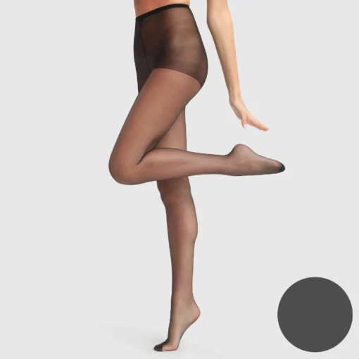 Strømpebukser 15 denier ultra transparent fra DIM giver et let og næsten usynligt look på benene, hvor huden fremstår jævn og elegant. Den fine voile kvalitet skaber en ultratynd struktur, som giver en diskret sløret effekt og et naturligt udtryk til både hverdag og fest. Farven Poivre er en dyb grå nuance, som giver et blødere alternativ til klassisk sort og passer smukt til mange forskellige outfits.