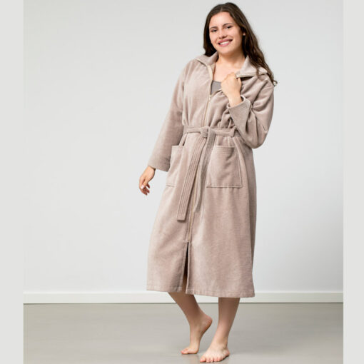 Frotte kåbe fra mærket JBA, i modellen Assens. Assens kåben er lang og har lange ærmer. Foran har den 2 dybe store lommer, lynlås og bindebind, der sidder i 2 stropper i siderne. Kåben er lavet i eksklusiv frotte, som er et stof der suger vand ligesom et håndklæde, derfor er kåben egnet til efter badet, og ideel til stranden, poolen eller søen, fx i forbindelse med vinterbadning. Kåben måler 120 cm i længden og 126 cm i brystvidden, i en str. L.