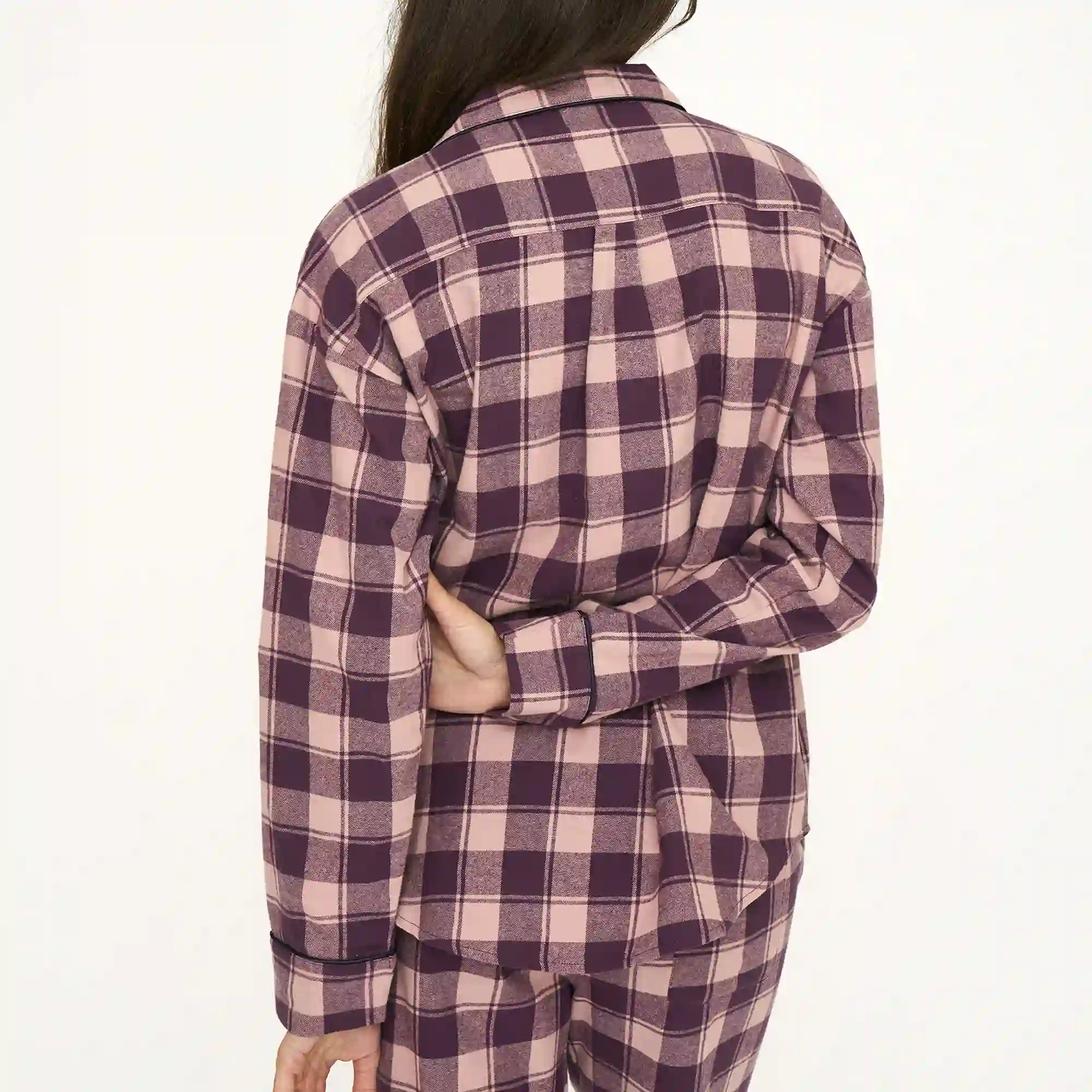 Skjorten er designet med gennemgående knaplukning, brystlomme og elegante kontrastkanter, som giver et stilrent finish. Den lange ærmelængde og afrundede afslutning bagpå bidrager til et afslappet, men velklædt look. Med sit åndbare materiale er den ideel til både afslapning og en god nats søvn, og den kan nemt kombineres med matchende flonelbukser for et komplet sæt.
