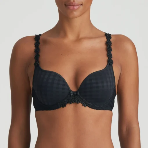 Hjerteformet BH fra Marie Jo Avero i sort forener feminin formgivning med ikonisk design. Den dybe sorte nuance fremhæver BH’ens elegante udtryk og gør den til et oplagt valg under både lyse og mørke outfits.