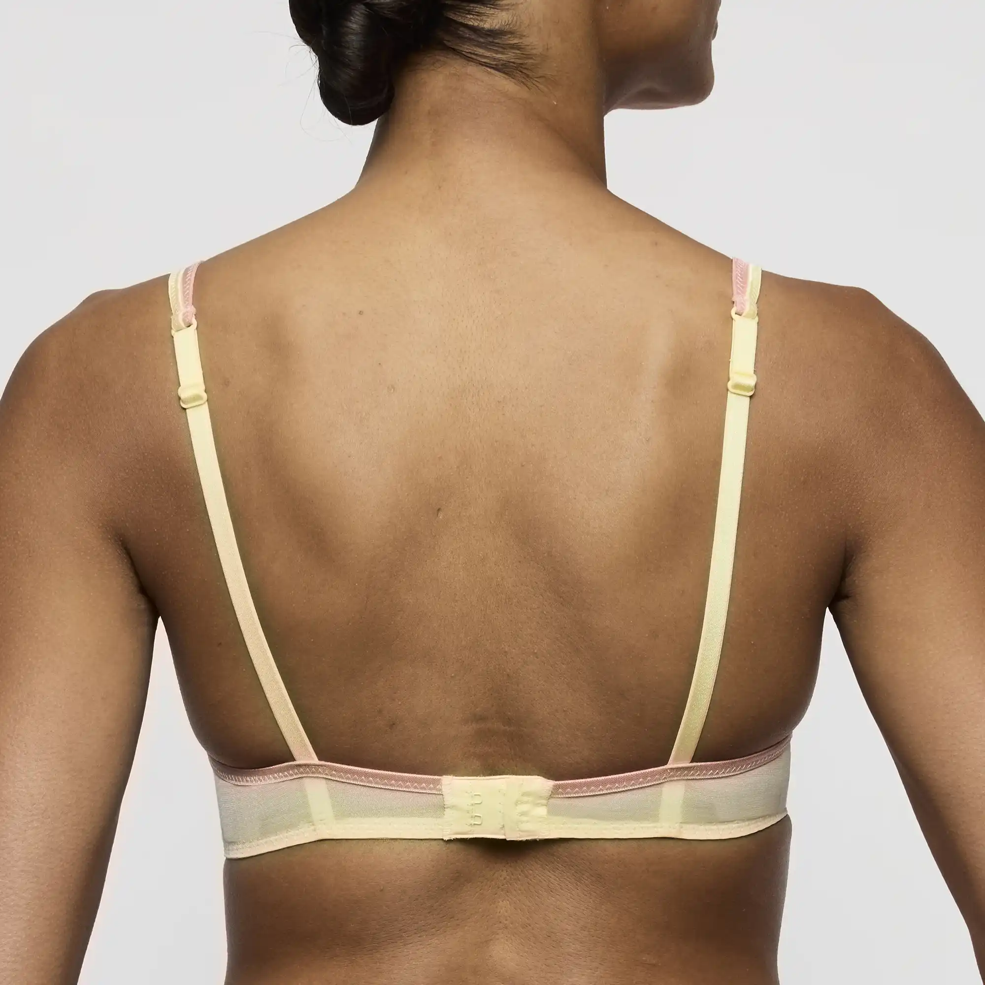 Hjerteformet bh med elegante blonder i gul og rosa