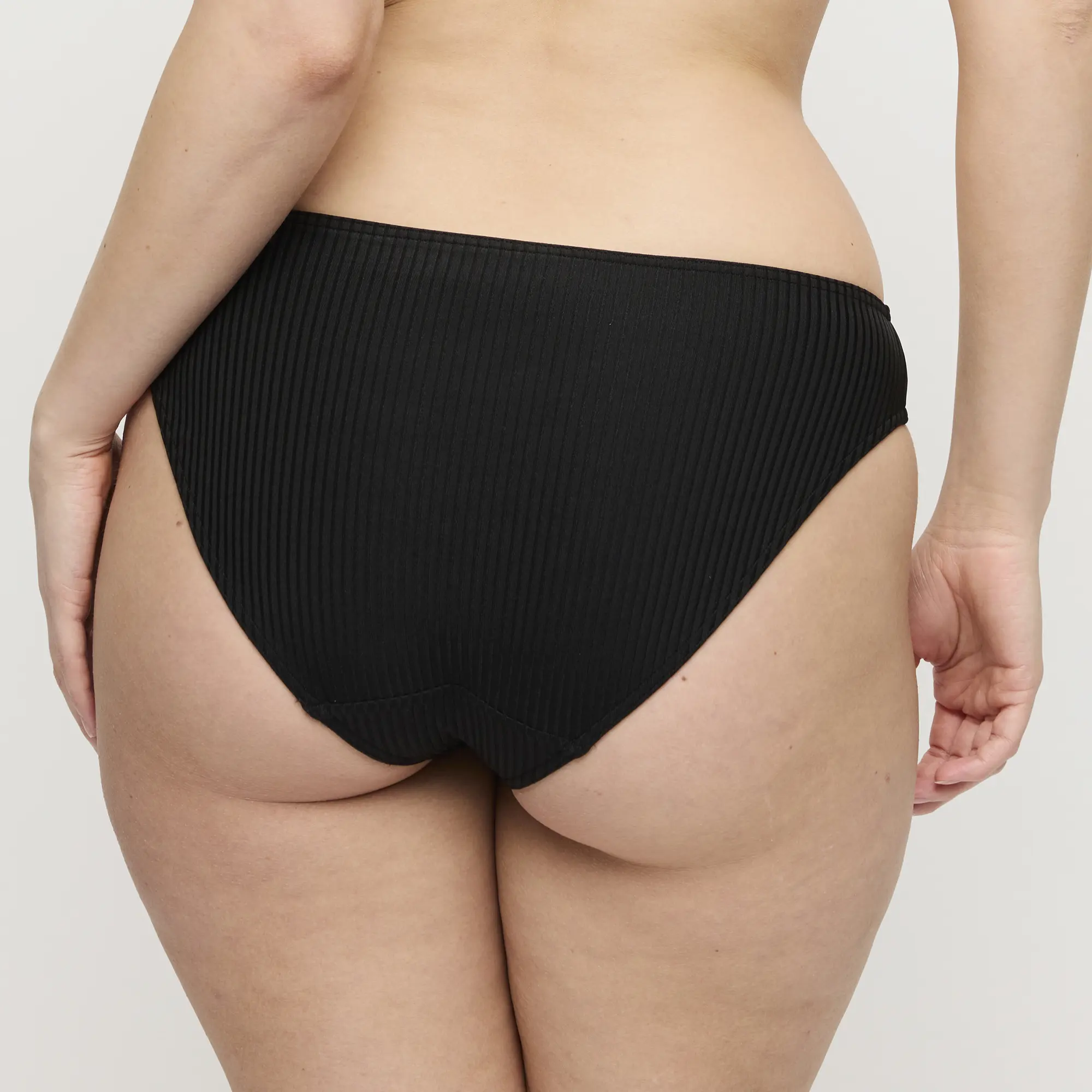 Denne sorte tai bikini trusse fra PrimaDonna Swim Delray er skabt til dig, der elsker en klassisk pasform med moderne elegance. Den let høje benudskæring giver et smigrende look og får benene til at virke længere, mens det bløde ribstrikkede materiale smyger sig behageligt mod huden.