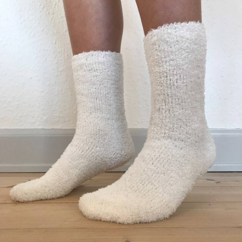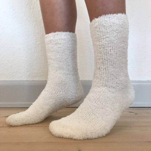 Dejligt bløde og tykke hyggesokker i microfiber strik med super blød elastisk kant og forstærket tå. Hyggesokken går til anklerne og kan bruges både til hygge og til at sove i.