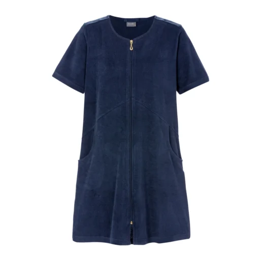 Rummelig Kåbe i frotte kvalitet, med skråt snit i siderne, gode store lommer foran og gennemgående lynlås. Med kort ærmer og en kort model.